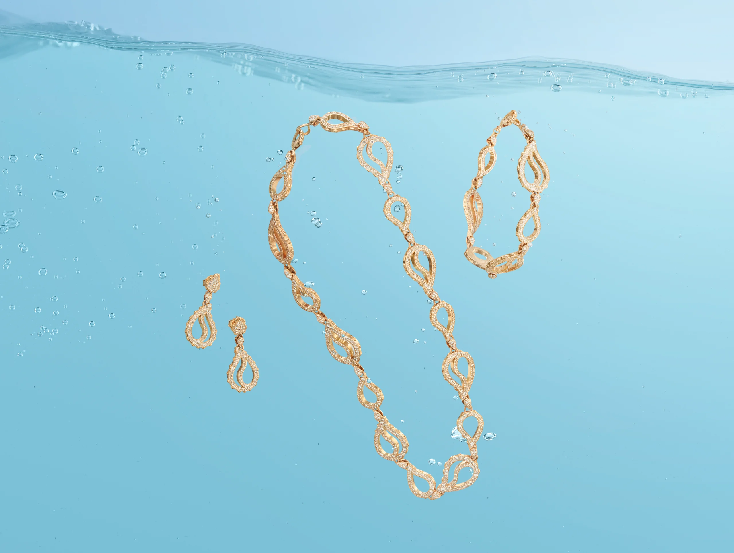 Discover the radiant opulence of High Pavé for life’s most unforgettable moments, the refined simplicity of High Pure in sculptural solid gold, the singular expression of Rain through its extraordinary gemstones, and the bold, empowering Signature designs inspired by the movement and vitality of water.