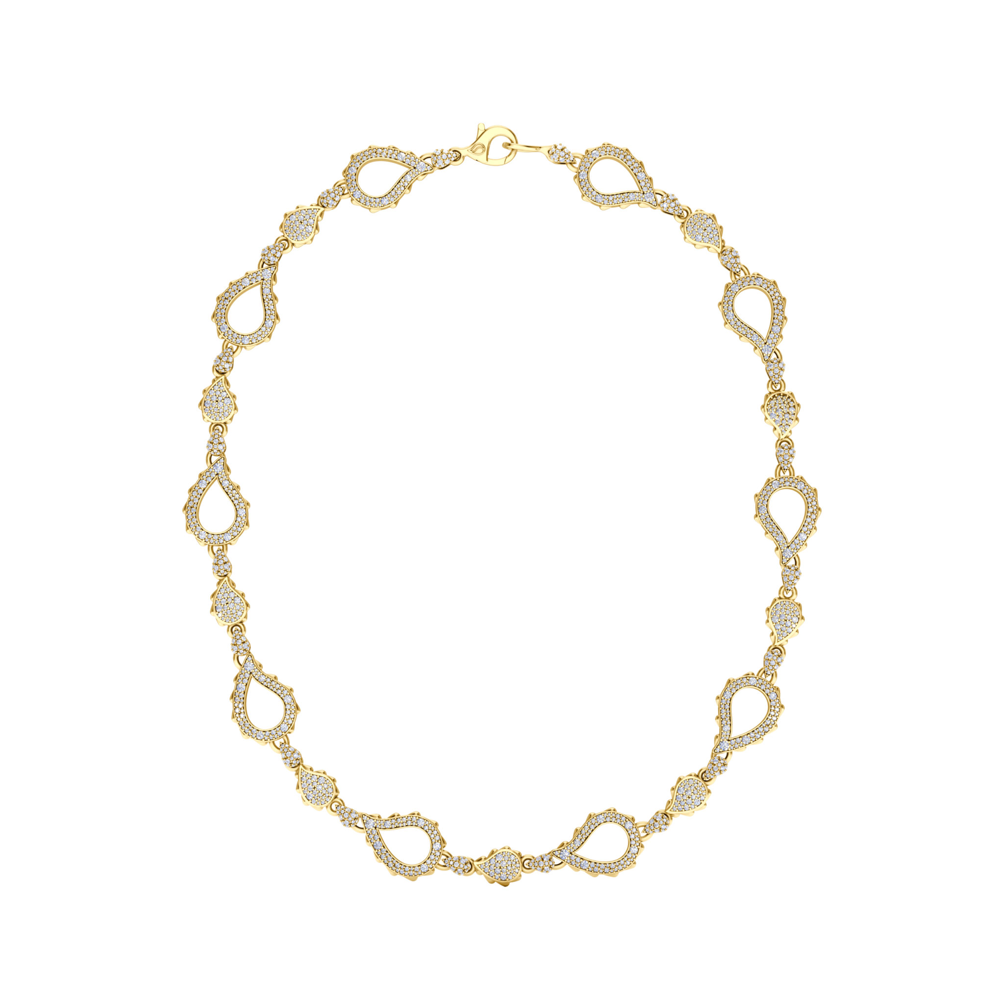 The High Pave Grand Duo Necklace is available in 18K Yellow ecological gold with Fairmined Certification. Encrusted with diamonds of the finest DEF, VVS quality, responsibly mined and impeccably cut. This stunning piece is one-of-a-kind: individually cast, handset multi-sized diamonds, meticulously hand finished and polished to perfection.