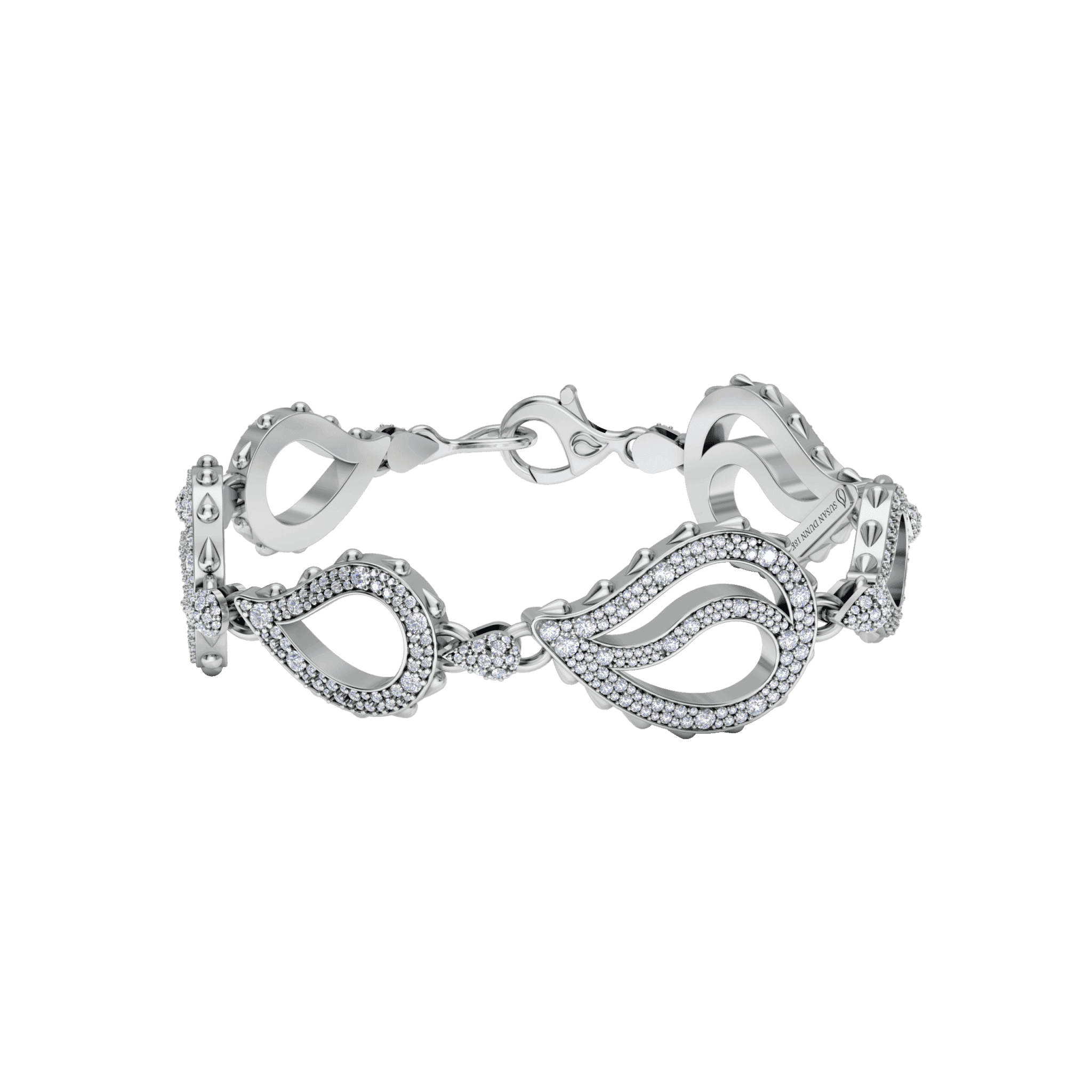 The High Pave Royal Duo Bracelet is available in 18K White ecological gold with Fairmined Certification. Encrusted with diamonds of the finest DEF, VVS quality, responsibly mined and impeccably cut. This stunning piece is one-of-a-kind: individually cast, handset multi-sized diamonds, meticulously hand finished and polished to perfection. Size: P/S & M/L
