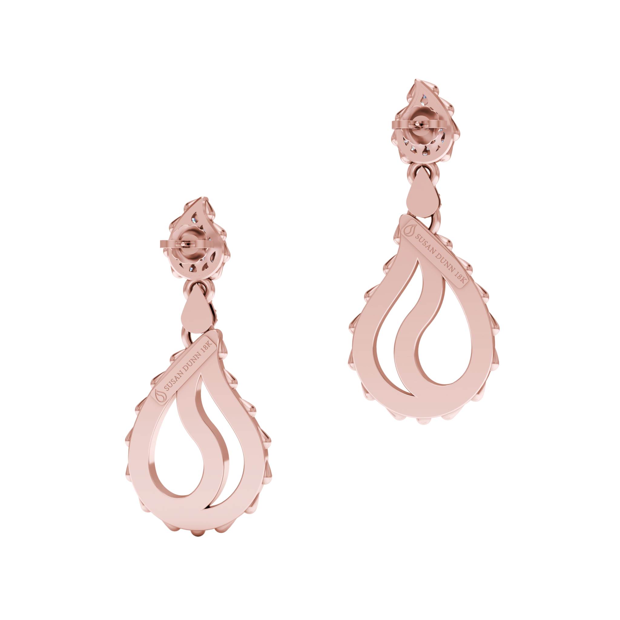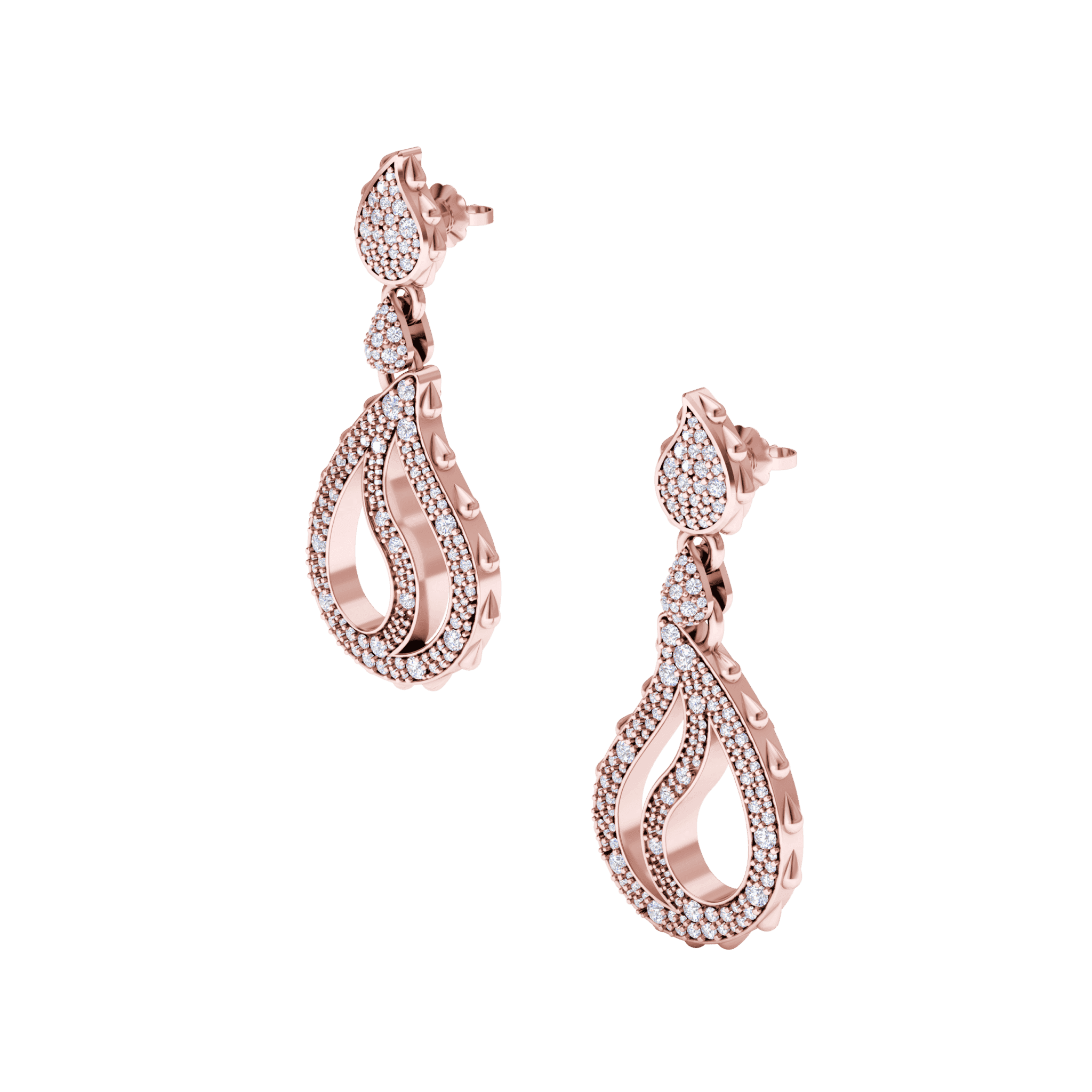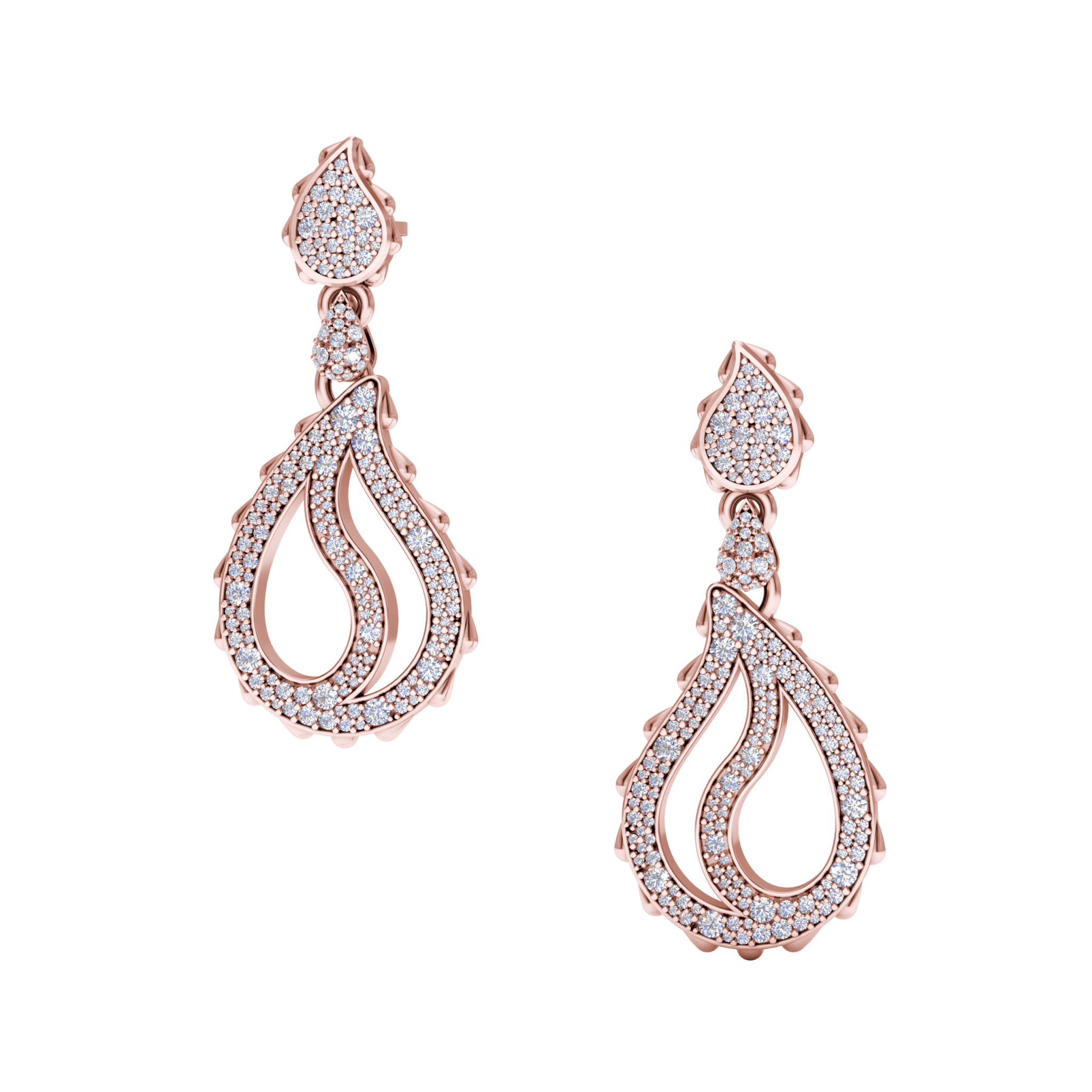 High Pave Royal Duo Drop Earrings in 18K Rose Gold