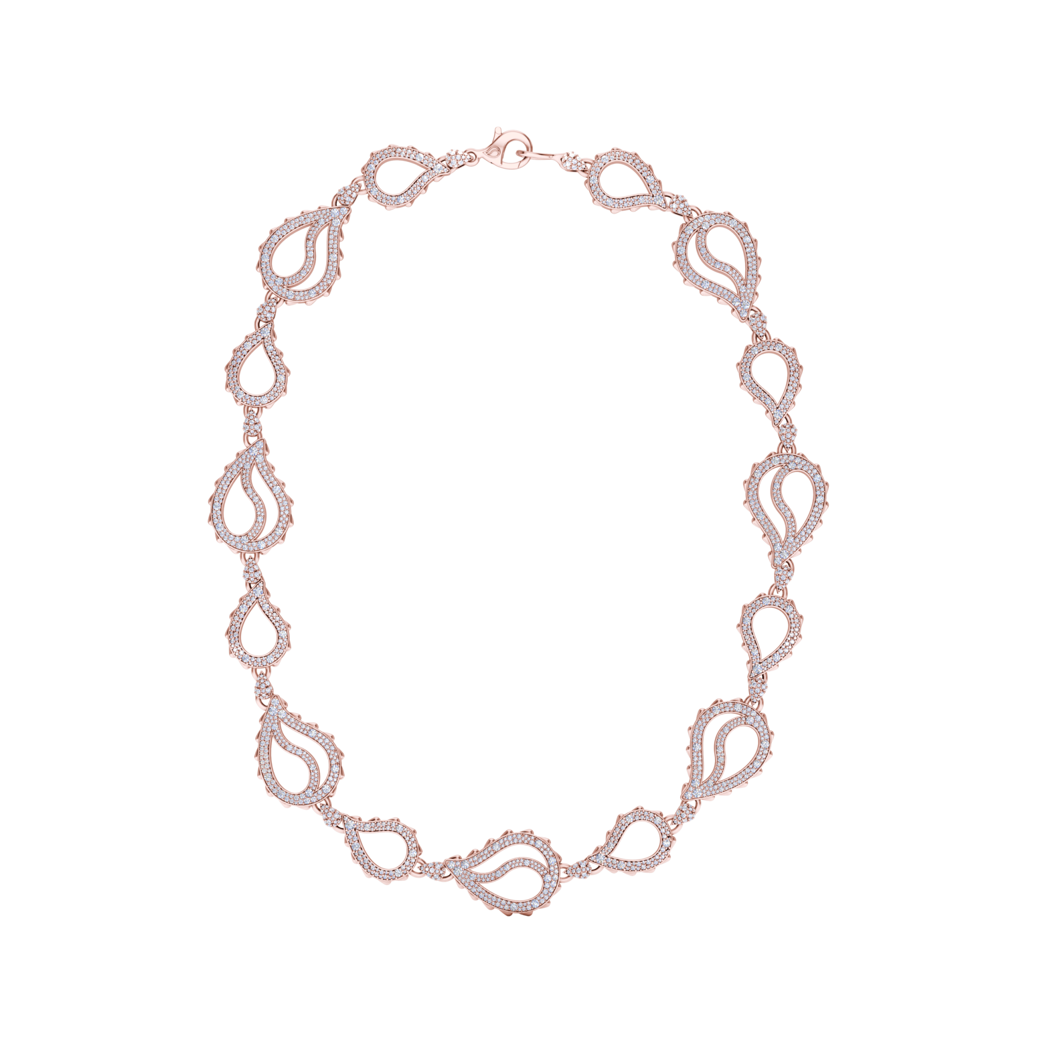 This High Pave Royal Duo Necklace is available in 18K Rose ecological gold with Fairmined Certification. A masterpiece, it is encrusted with diamonds of the finest DEF, VVS quality, responsibly mined and impeccably cut. This stunning piece is one-of-a-kind: individually cast, handset with multi-sized diamonds, meticulously hand finished and polished to perfection.