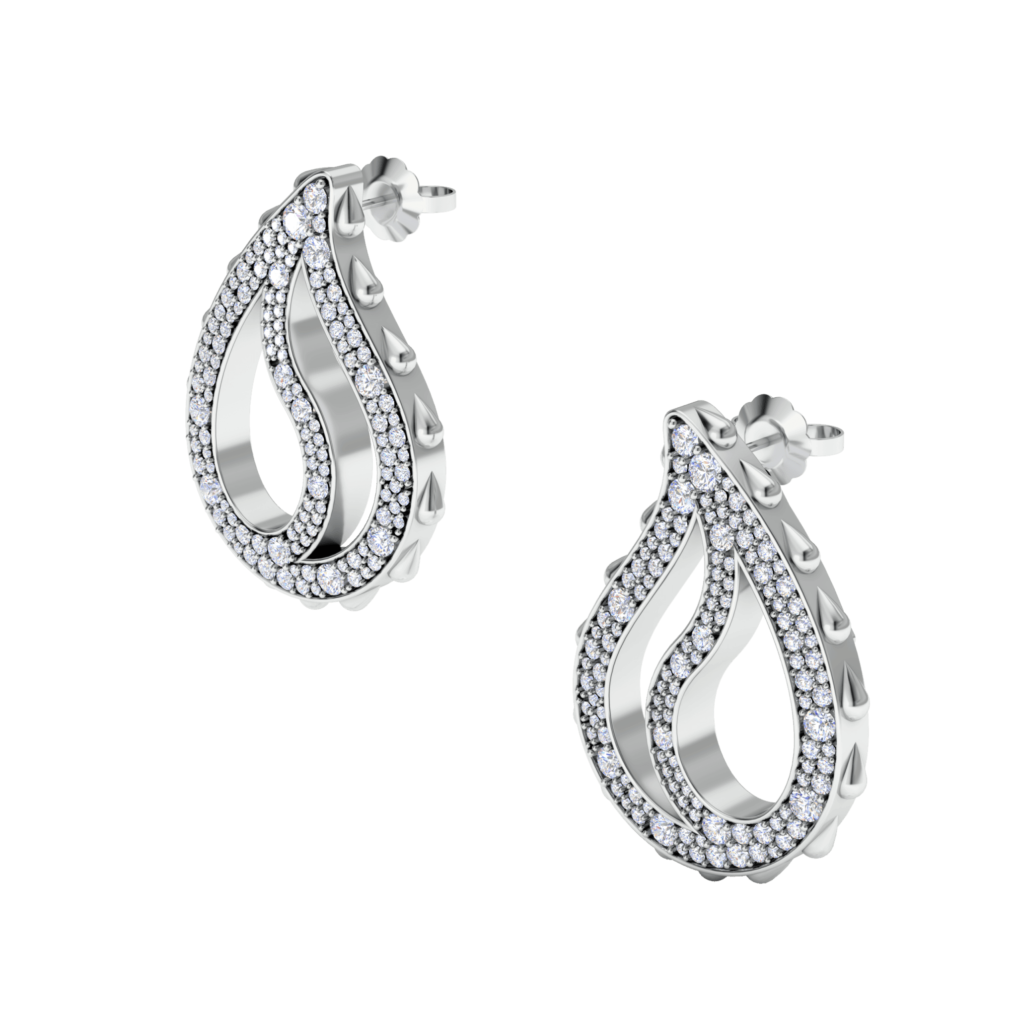 High Pave Royal Earrings in 18K White Gold