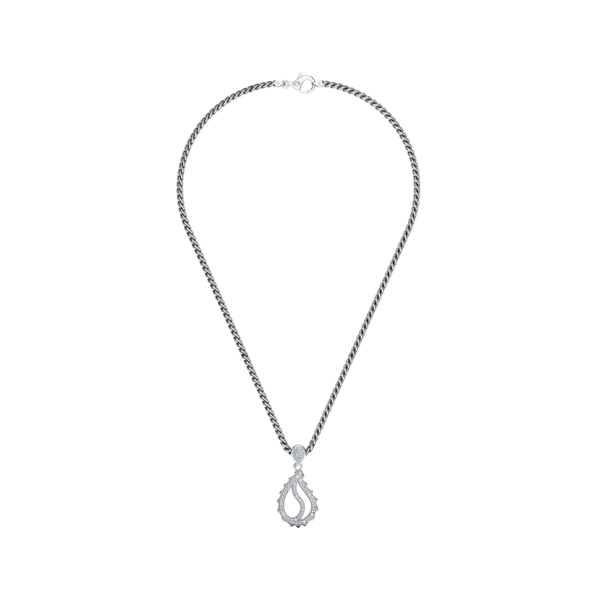 The High Pave Royal Pendant is available in 18K White ecological gold with Fairmined Certification. Encrusted with diamonds of the finest DEF, VVS quality, responsibly mined and impeccably cut. This stunning piece is one-of-a-kind: individually cast, handset multi-sized diamonds, meticulously hand finished and polished to perfection.