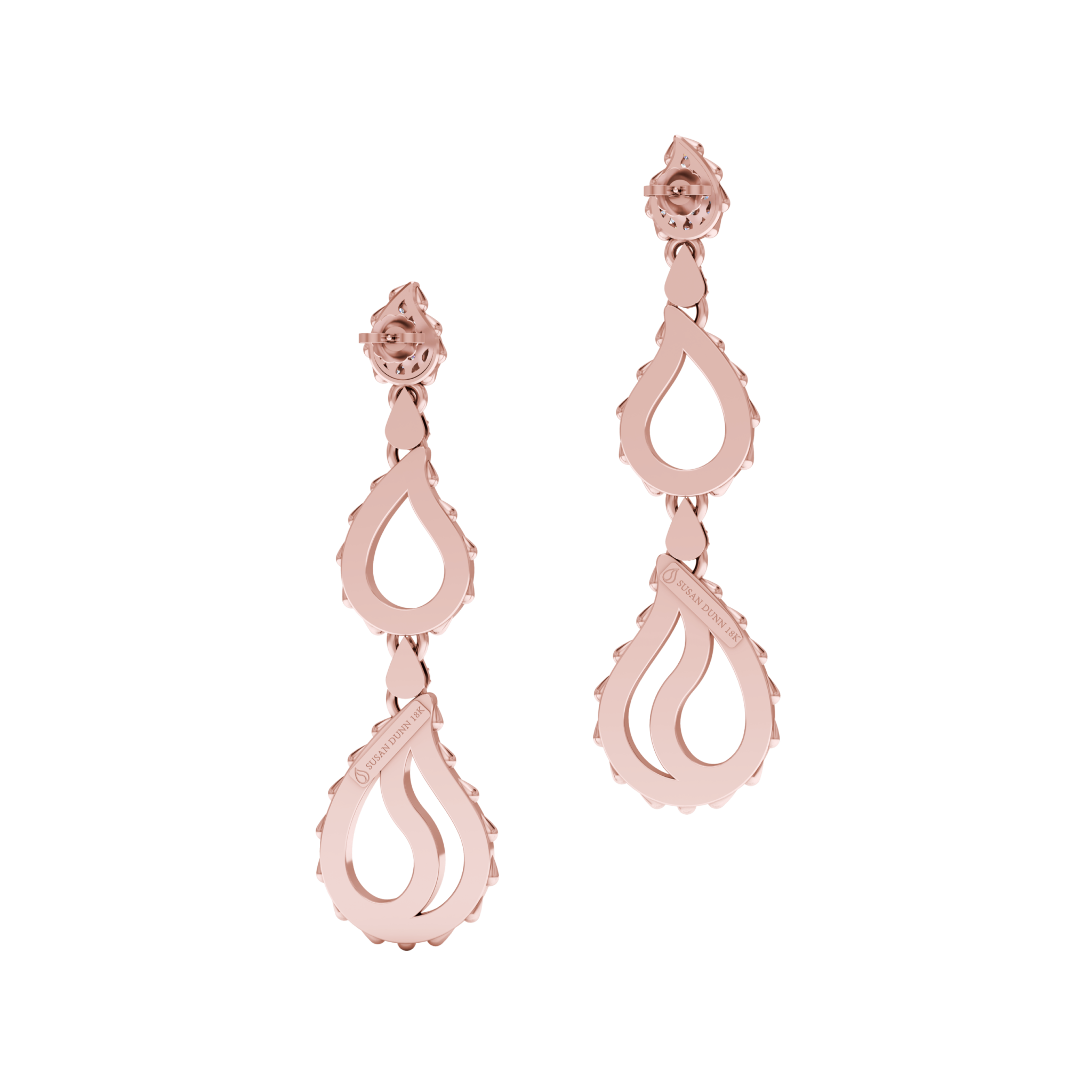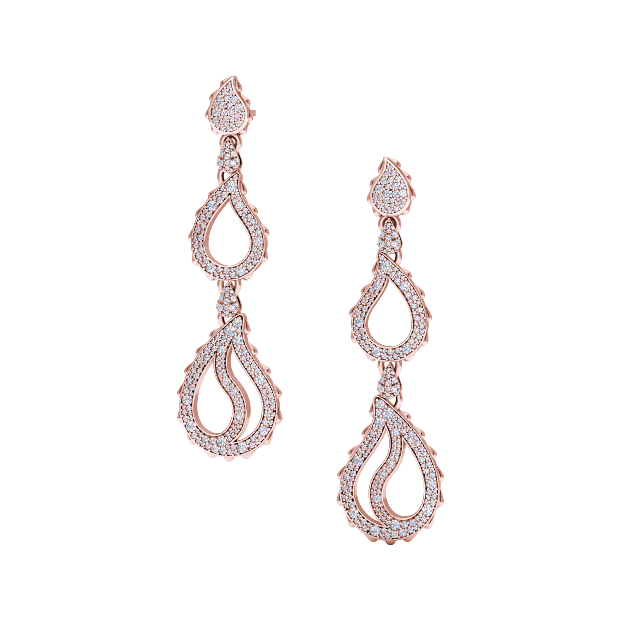 High Pave Royal Trio Dangles in 18K Rose Gold
