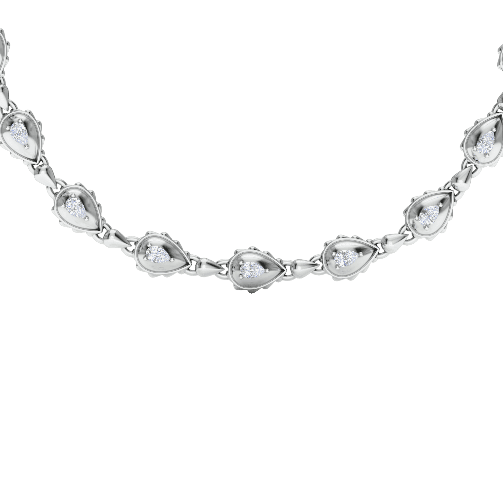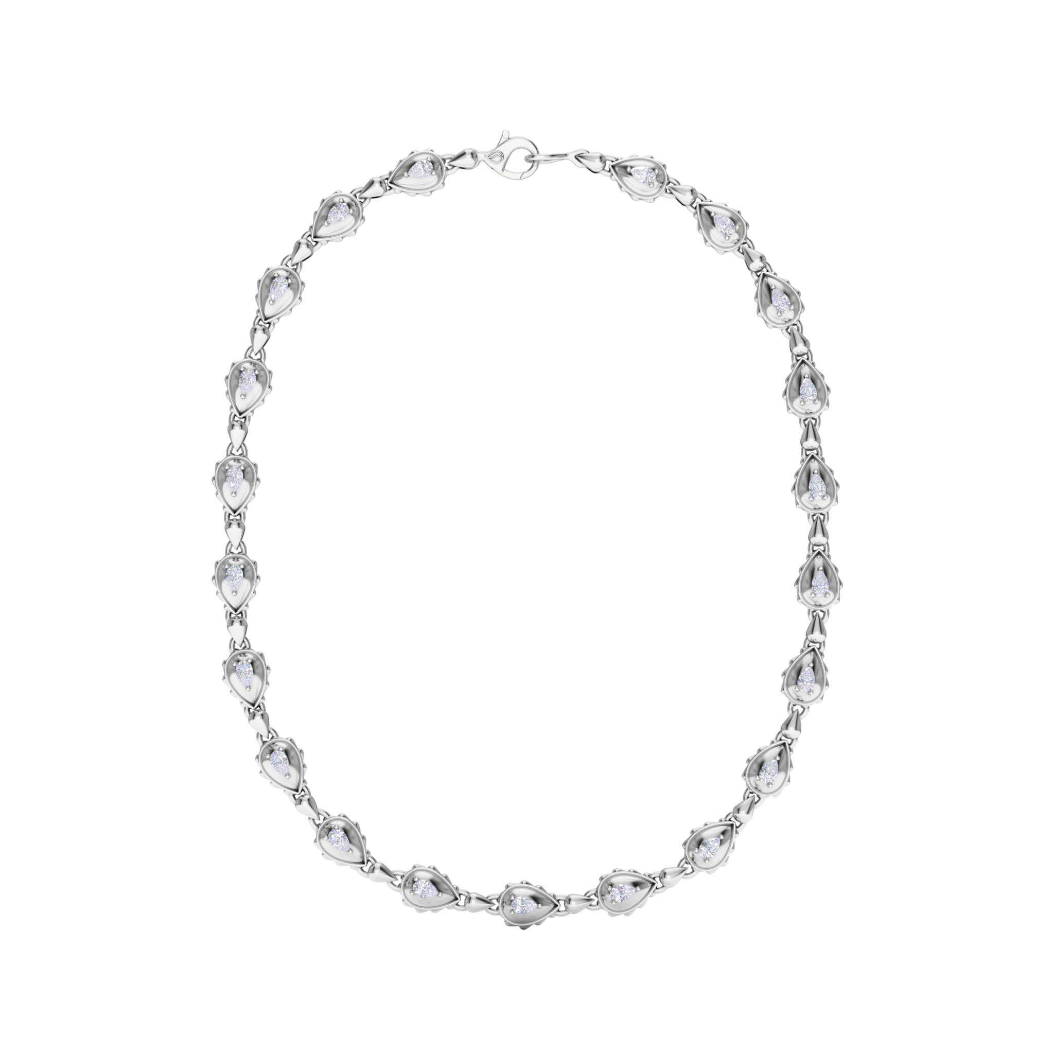 The Rain Classic Necklace is available in 18K White ecological gold with Fairmined Certification. A mesmerizing creation, it is adorned with GIA Certified Waterdrop Shaped diamonds of the finest DEF, VVS1 quality, responsibly mined and impeccably cut. This stunning piece is one-of-a-kind: individually cast, handset diamonds, meticulously hand finished and polished to perfection.