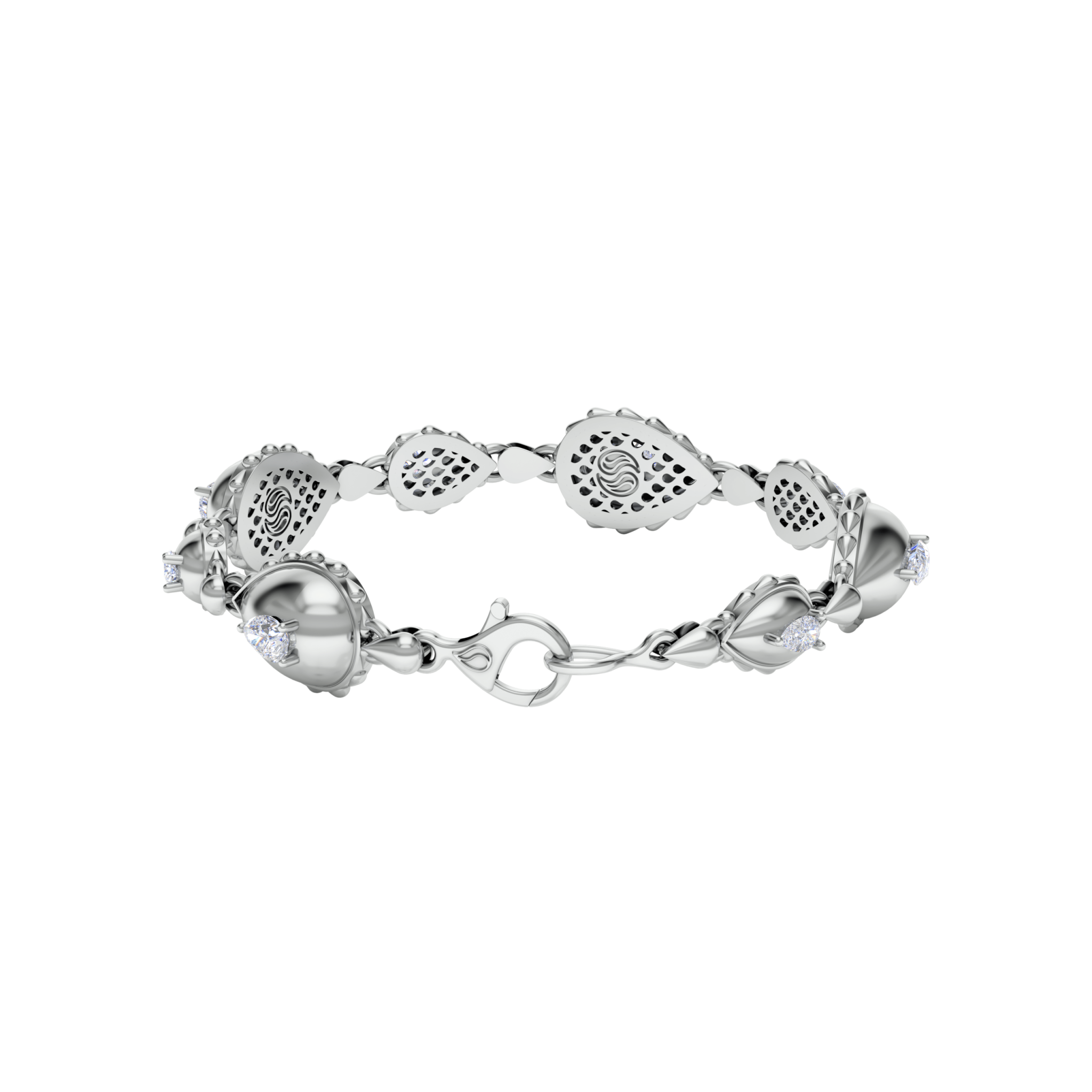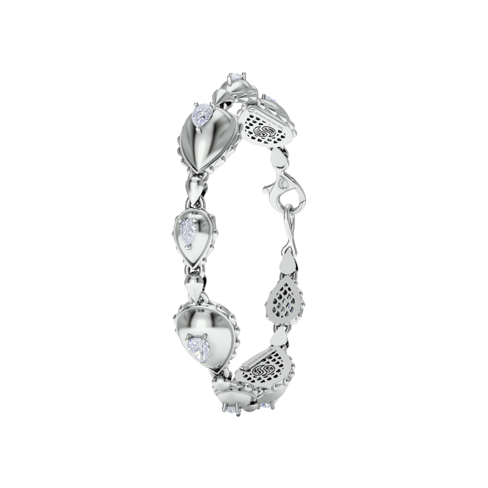 The Rain Grand Duo Bracelet is available in 18K White ecological gold with Fairmined Certification. Adorned with GIA Certified Waterdrop Shaped diamonds of the finest DEF, VVS1 quality, responsibly mined and impeccably cut. This stunning piece is one-of-a-kind: individually cast, handset diamonds, meticulously hand finished and polished to perfection. Sizes: P/S, M/L