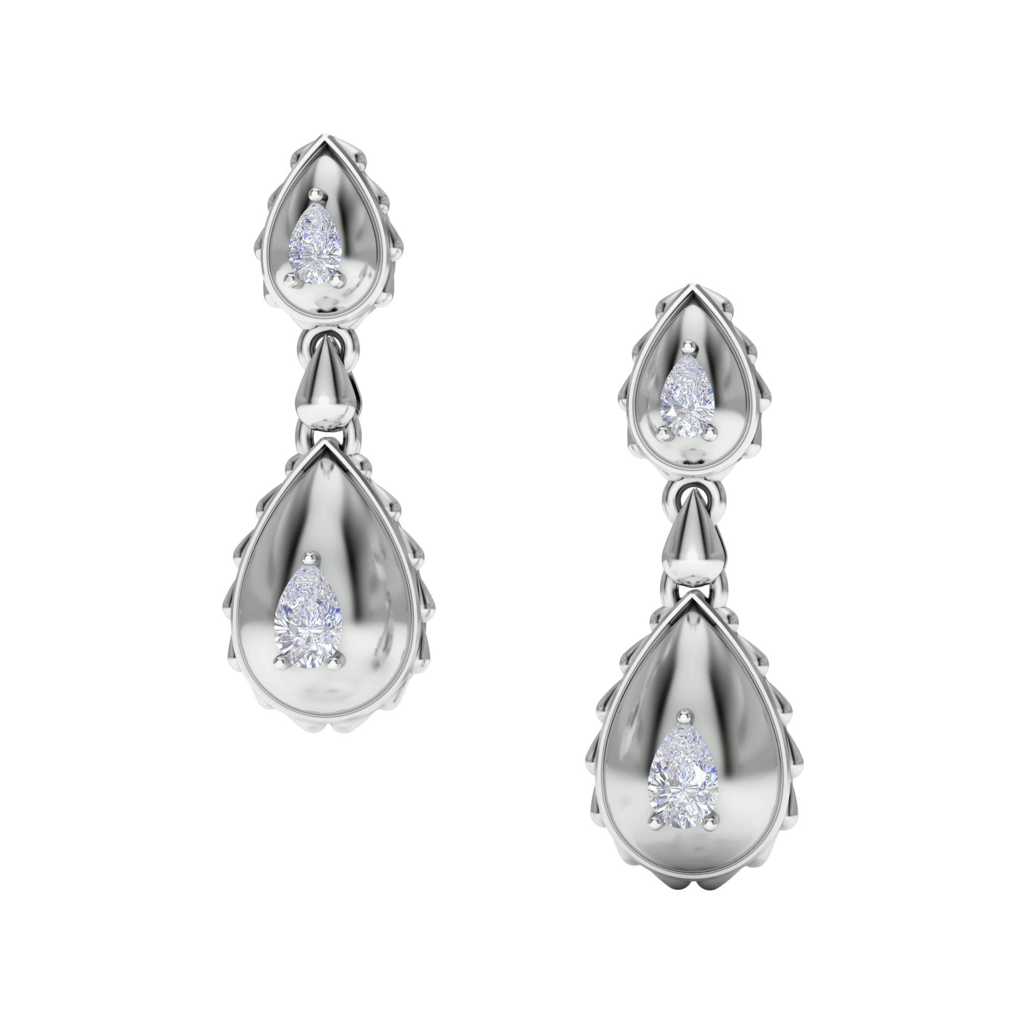 The Rain Grand Duo Drop Earrings are available in 18K White ecological gold with Fairmined Certification. Adorned with GIA Certified Waterdrop Shaped diamonds of the finest DEF, VVS1 quality, responsibly mined and impeccably cut. This stunning pair is one-of-a-kind: individually cast, handset diamonds, meticulously hand finished and polished to perfection.