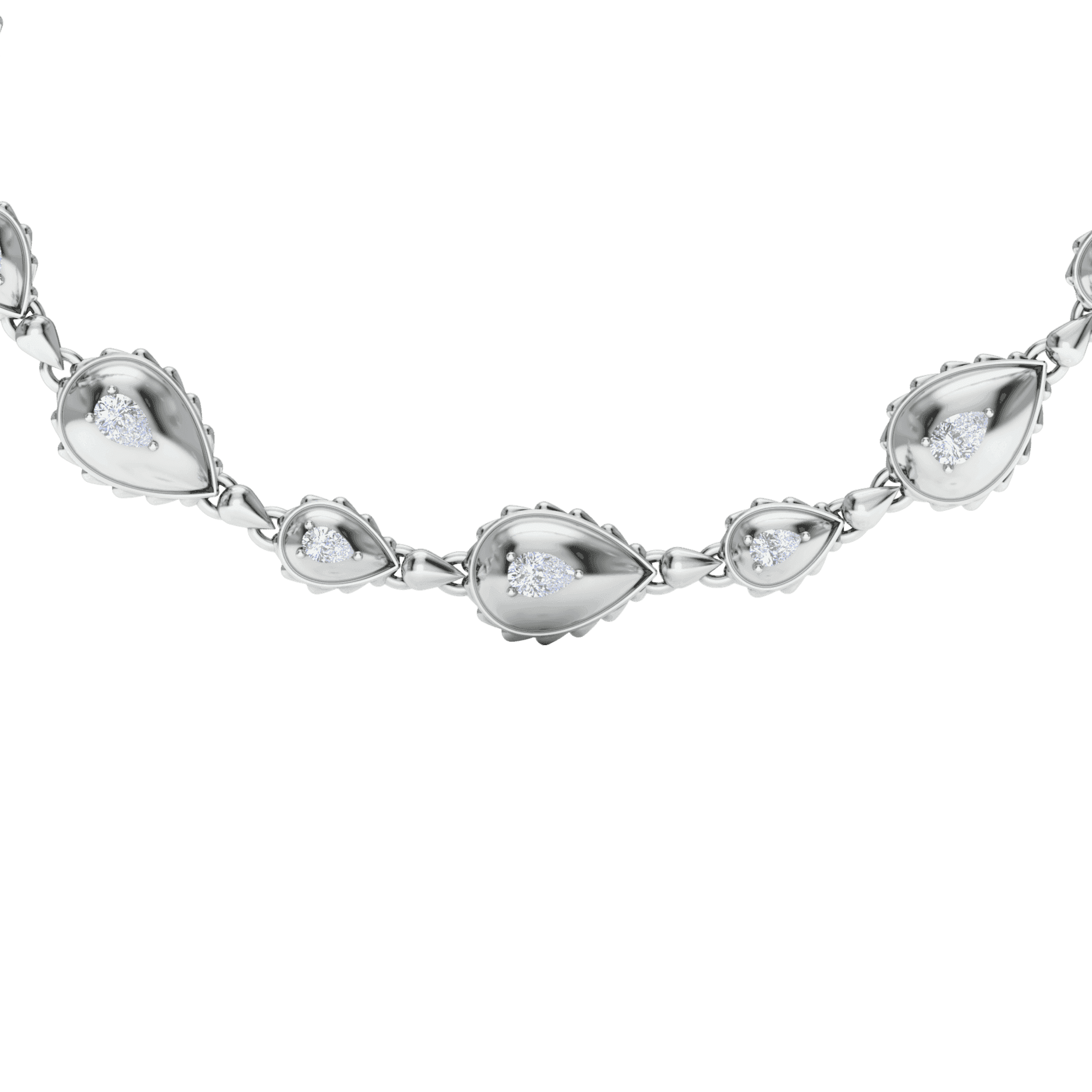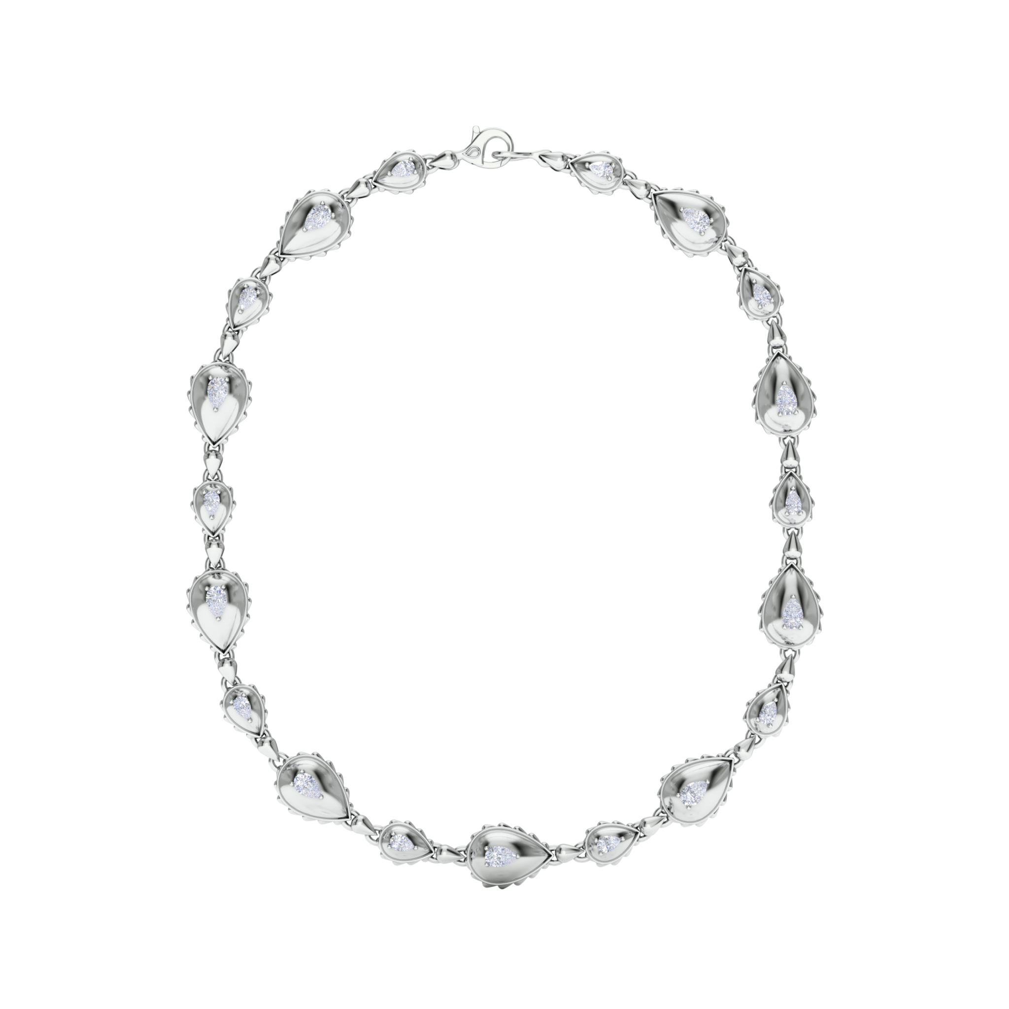 The Rain Grand Duo Necklace is available in 18K White ecological gold with Fairmined Certification. A remarkable creation, it is adorned with GIA Certified Waterdrop Shaped diamonds of the finest DEF, VVS1 quality, responsibly mined and impeccably cut. This stunning piece is one-of-a-kind: individually cast, handset diamonds, meticulously hand finished and polished to perfection.