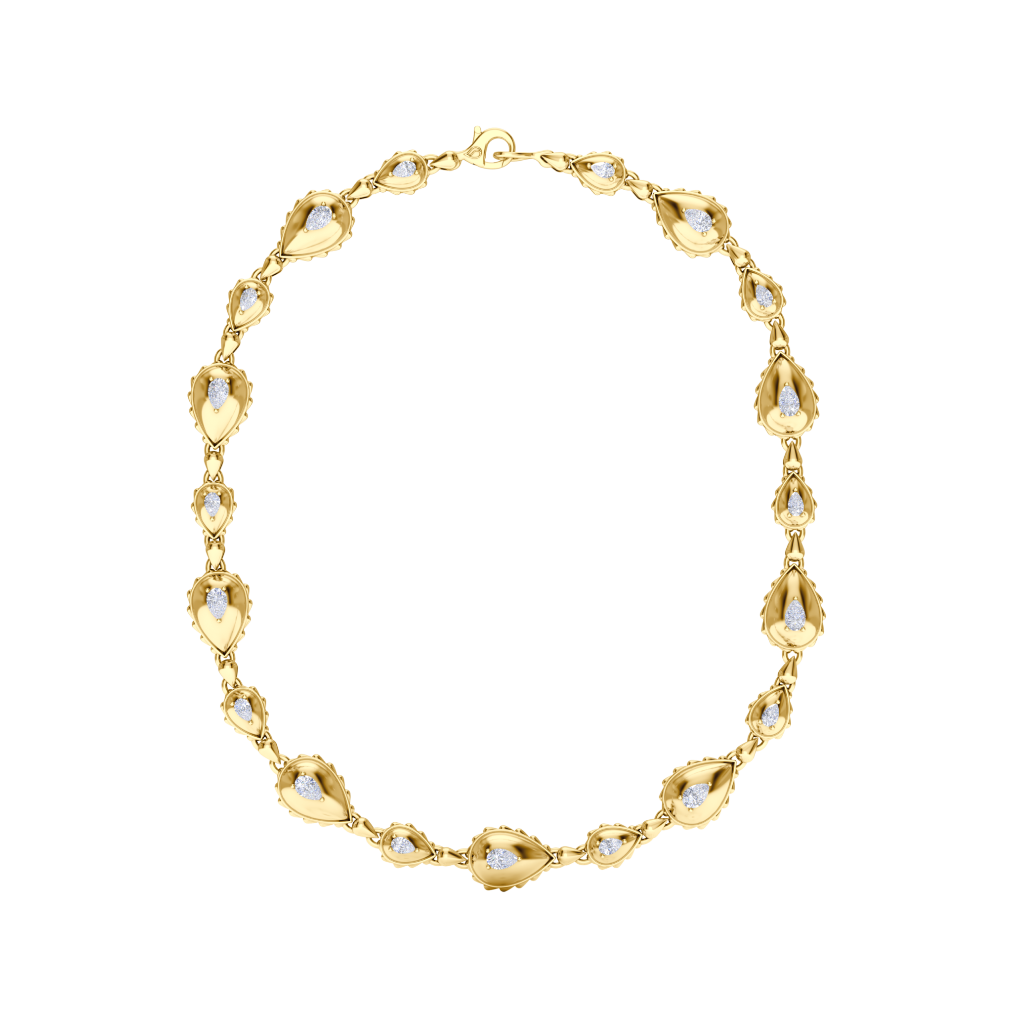 The Rain Grand Duo Necklace is available in 18K Yellow ecological gold with Fairmined Certification. A remarkable creation, it is adorned with GIA Certified Waterdrop Shaped diamonds of the finest DEF, VVS1 quality, responsibly mined and impeccably cut. This stunning piece is one-of-a-kind: individually cast, handset diamonds, meticulously hand finished and polished to perfection.
