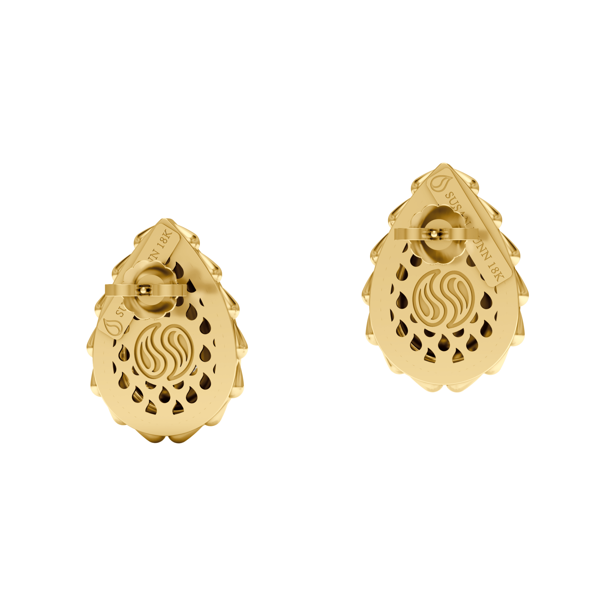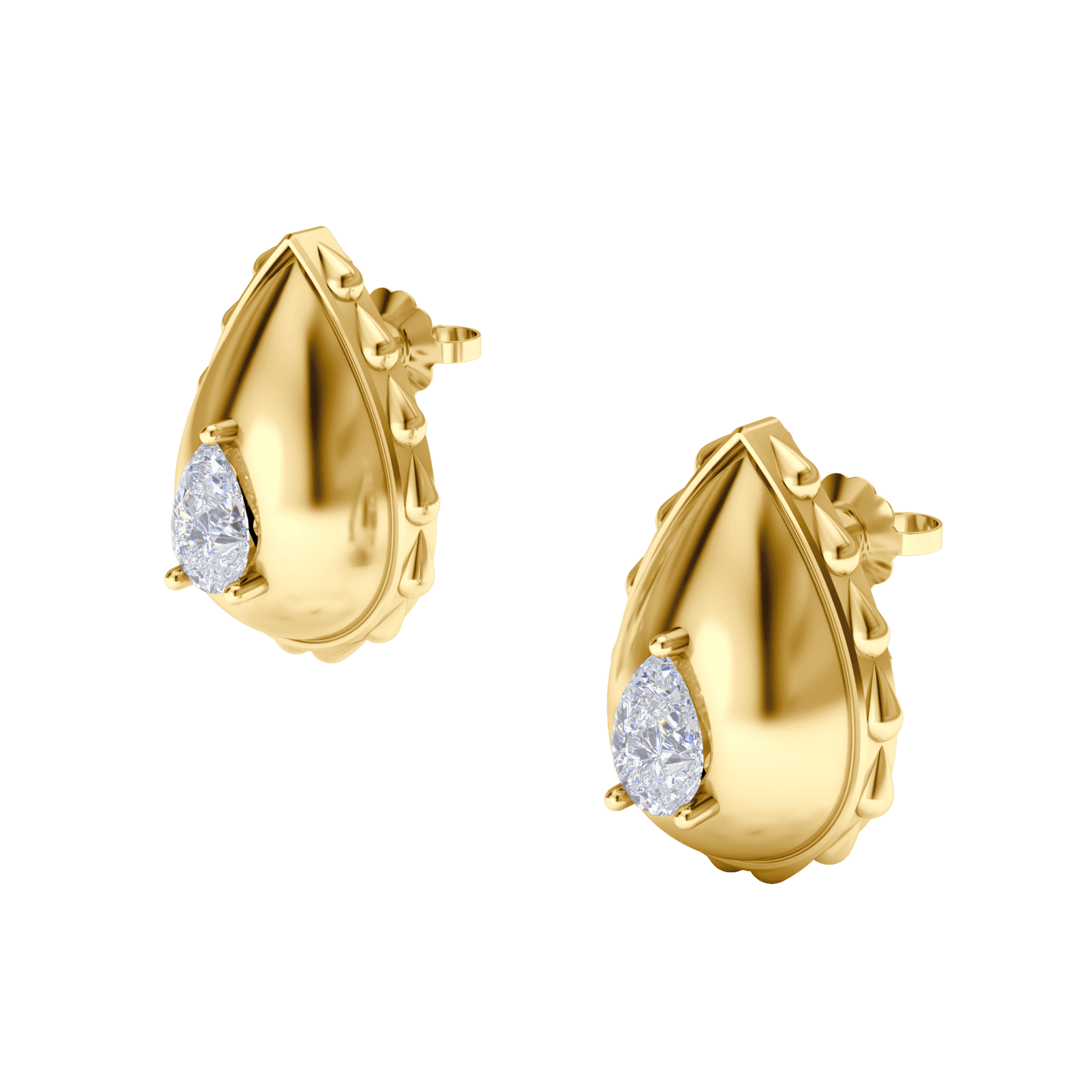 These Rain Grand Earrings are available in 18K Yellow ecological gold with Fairmined Certification. Adorned with GIA Certified Water-Drop Shaped diamonds of the finest DEF, VVS quality, responsibly mined and impeccably cut. This stunning piece is one-of-a-kind: individually cast, handset diamonds, meticulously hand finished and polished to perfection.