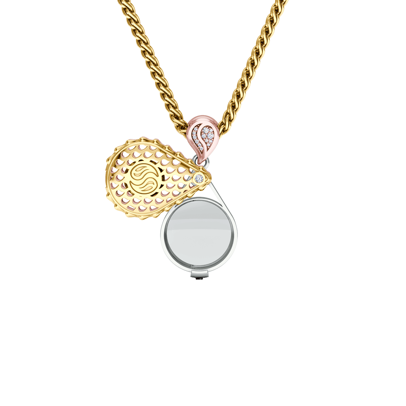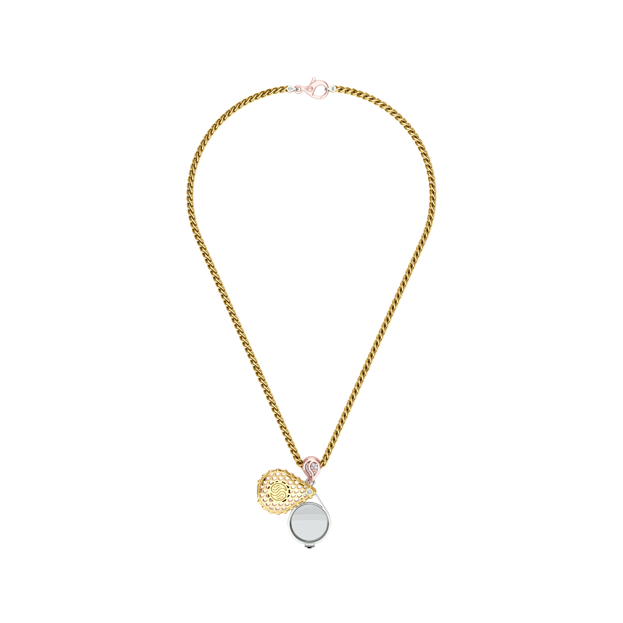 Our Royal Signature Collector’s Loupe Pendant is available in 18K Tricolor ecological gold with Fairmined Certification. A genuine showstopper, this conversation piece allows you to be up close and personal with your favorite gemstones. Revel in the mesmerizing facets and stunning sparkle of your exquisite jewels and exult in sporting our amazing Signature Loupe Pendant for all to appreciate.