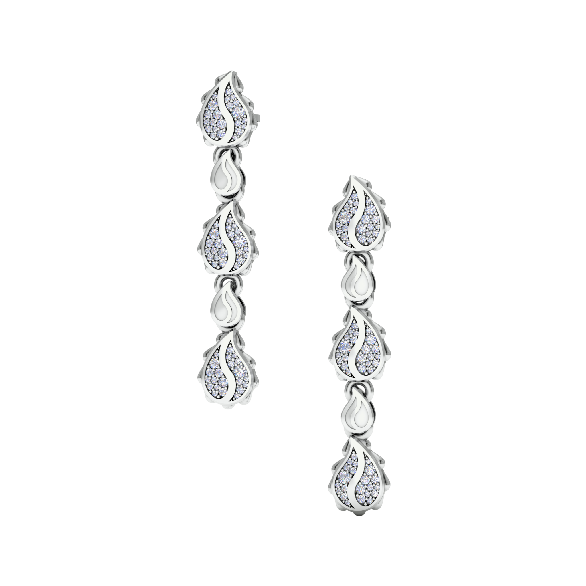 The Signature Classic Dangles are available in 18K White ecological gold with Fairmined Certification and encrusted with diamonds of the finest DEF, VVS quality, responsibly mined and impeccably cut. This sparkling pair is one-of-a-kind: individually cast, handset diamonds, meticulously hand finished and polished to perfection.
