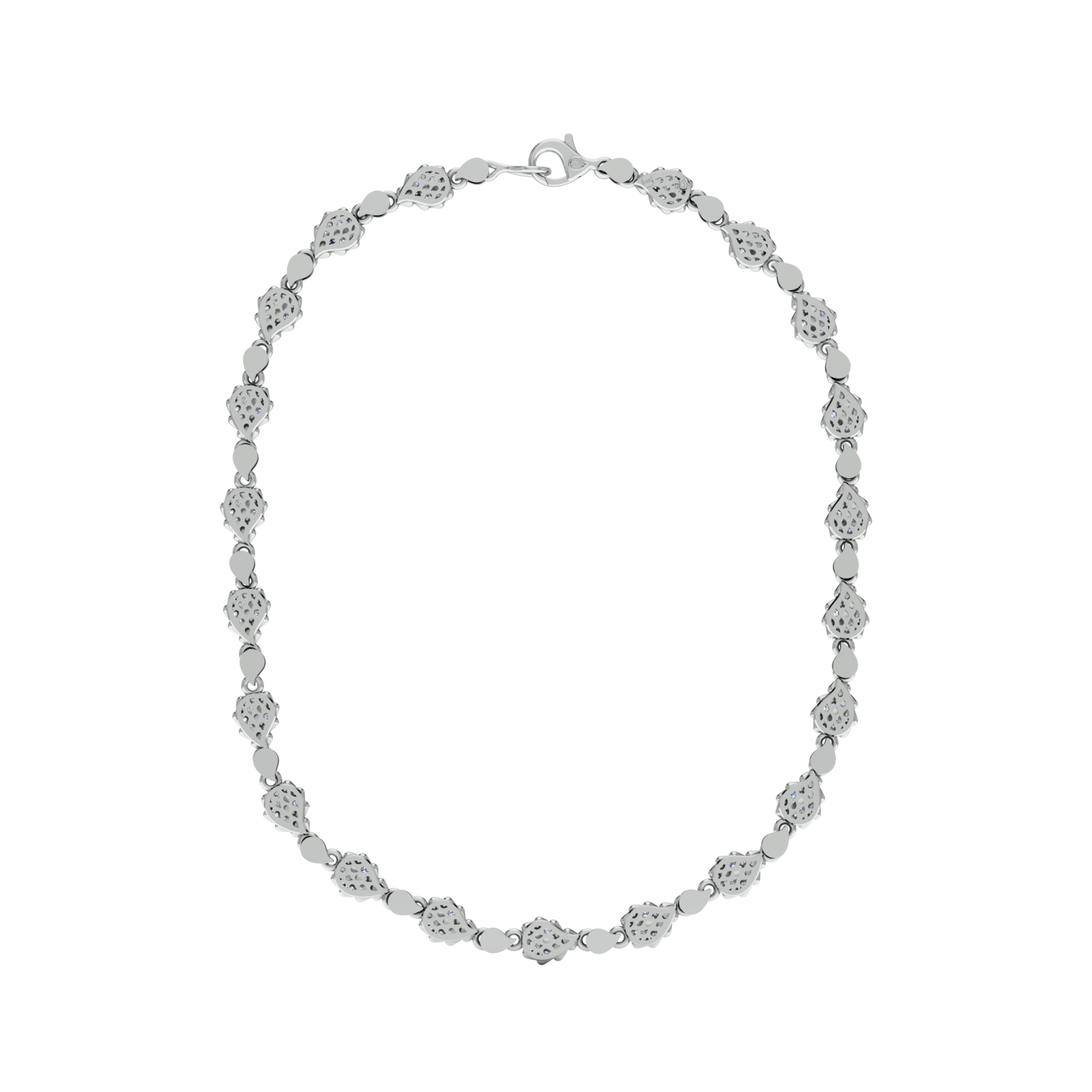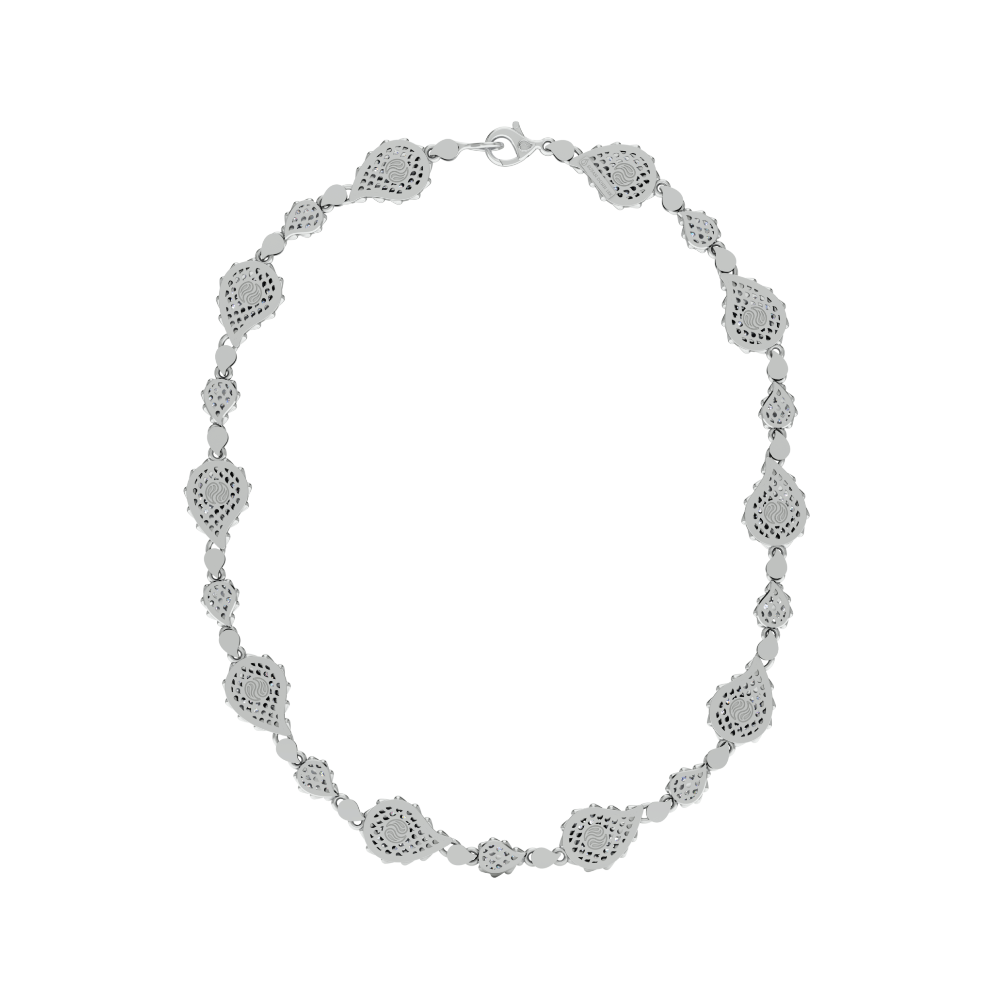 The Signature Classic Necklace is available in 18K White ecological gold with Fairmined Certification and encrusted with diamonds of the finest DEF, VVS quality, responsibly mined and impeccably cut. This stunning creation is one-of-a-kind: individually cast, handset multi-sized diamonds, meticulously hand finished and polished to perfection.
