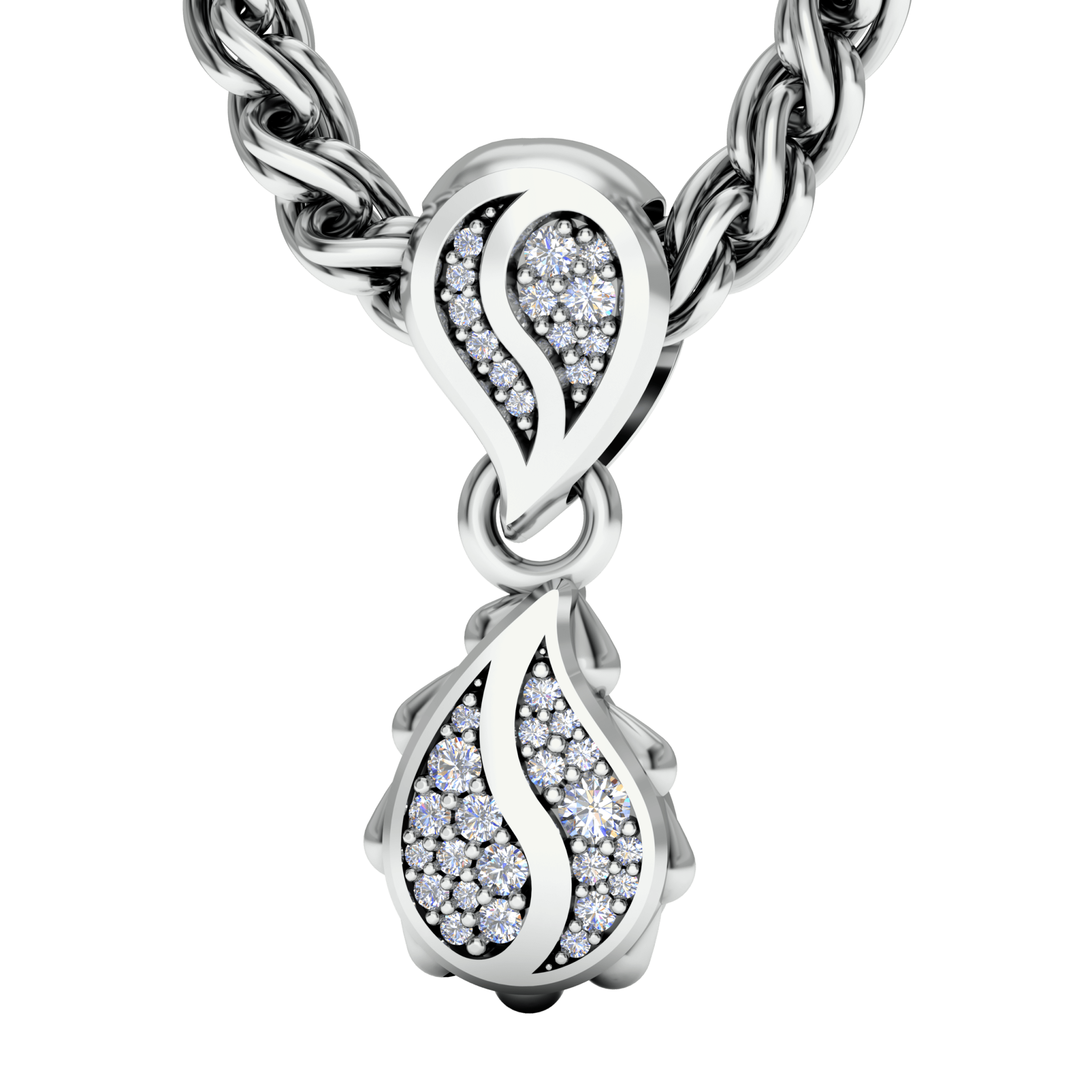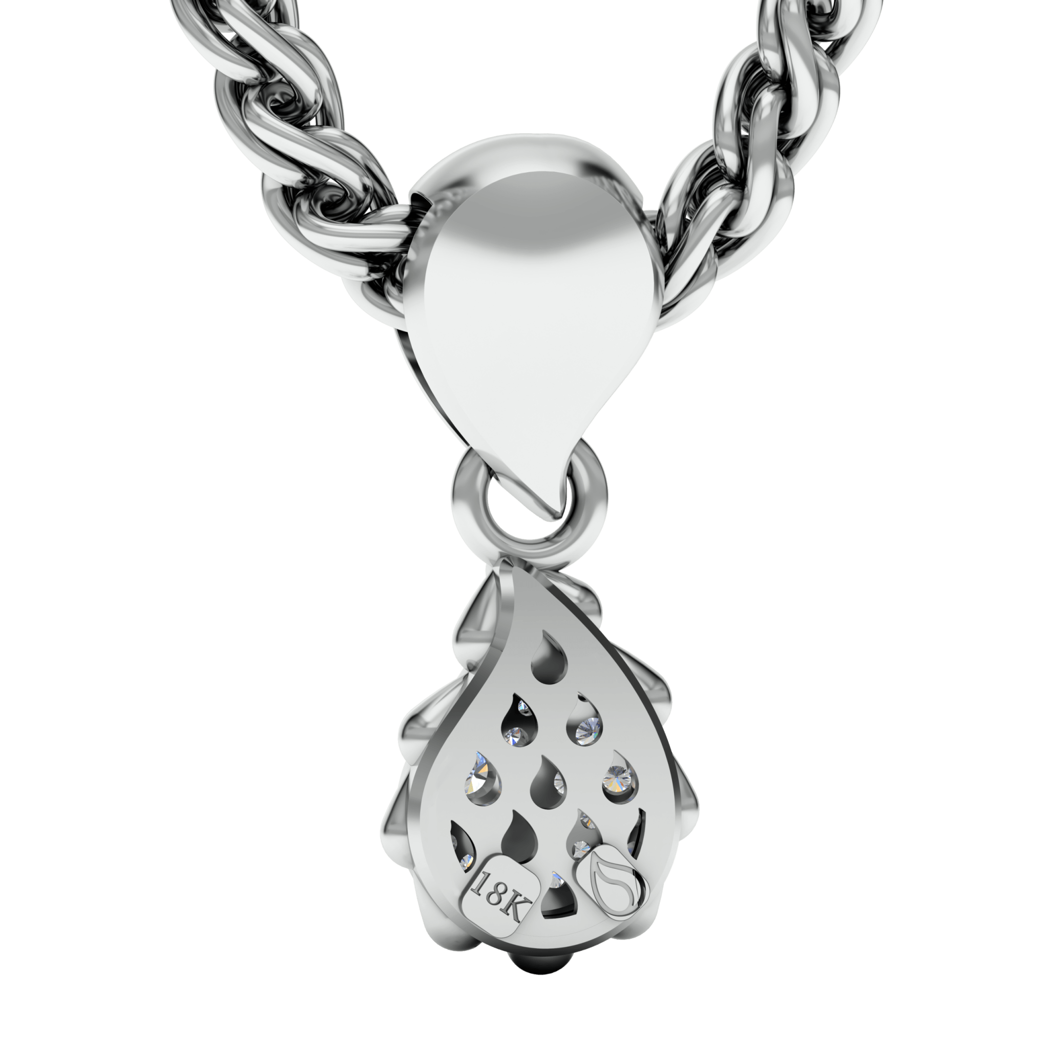 The Signature Classic Pendant is available in 18K White ecological gold with Fairmined Certification and encrusted with multi-sized diamonds of the finest DEF, VVS quality, responsibly mined and impeccably cut. This stunning piece is one-of-a-kind: individually cast, handset diamonds, meticulously hand finished and polished to perfection.