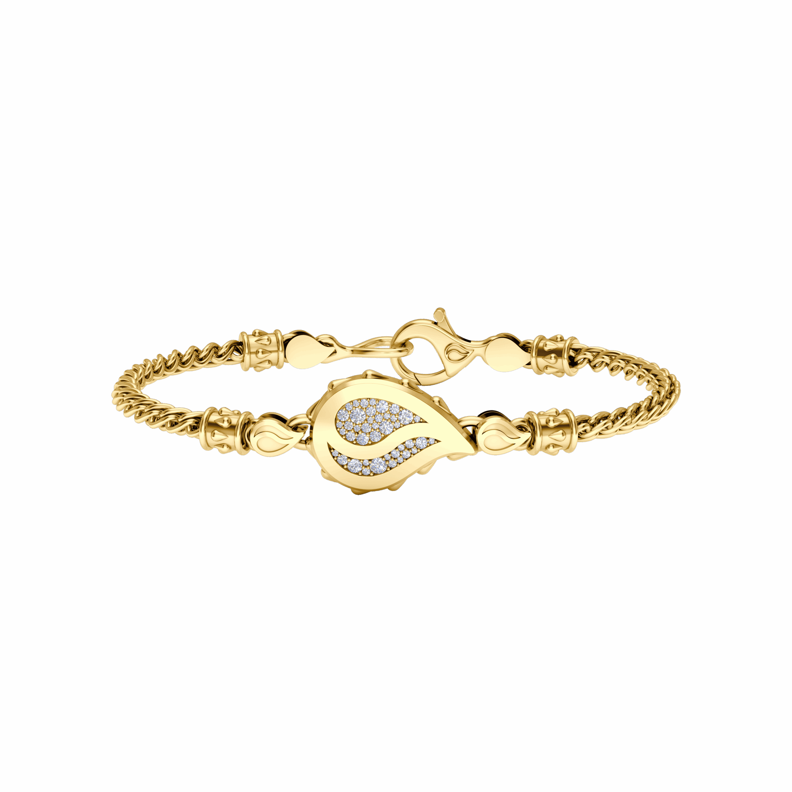 The Signature Grand Chain Bracelet is available in 18K Yellow ecological gold with Fairmined Certification. The Signature Grand Icon is encrusted with multi-sized diamonds of the finest DEF, VVS quality, responsibly mined and impeccably cut. Our Signature chain, clasp and decorative detailing sets this stunning piece apart from all others: individually cast, handset diamonds, meticulously hand finished and polished to perfection.