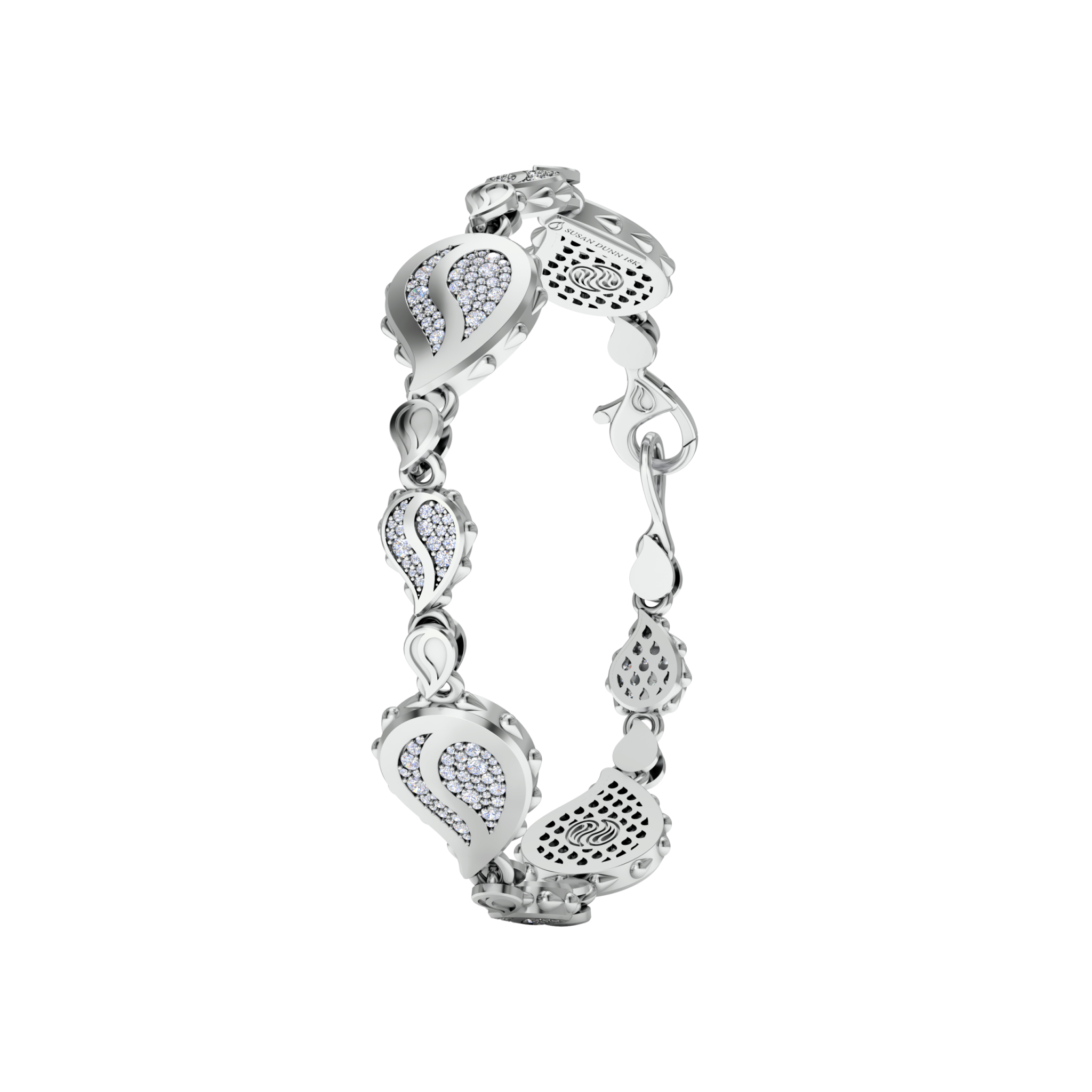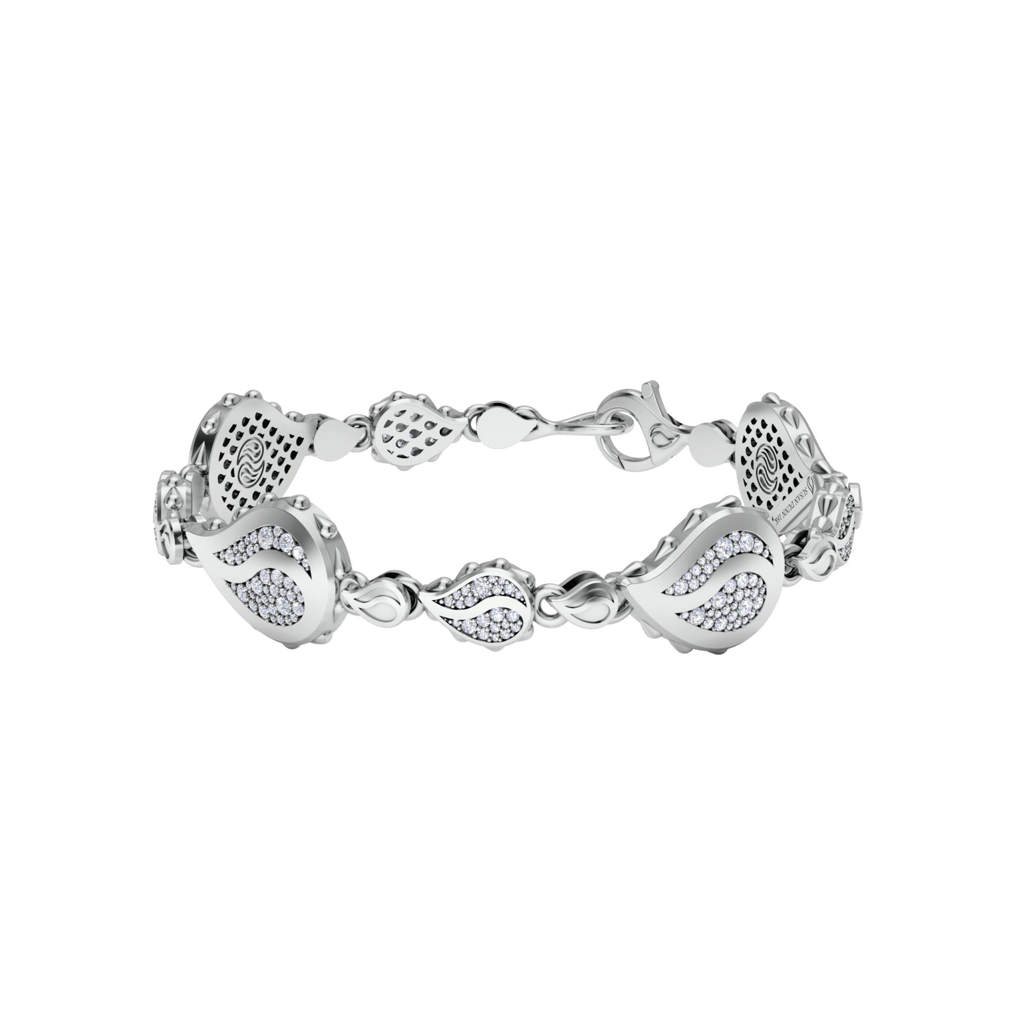 The Signature Grand Duo Bracelet is available in 18K White ecological gold with Fairmined Certification and encrusted with diamonds of the finest DEF, VVS quality, responsibly mined and impeccably cut. This stunning creation is one-of-a-kind: individually cast, handset diamonds, meticulously hand finished and polished to perfection. Sizes: P/S, M/L