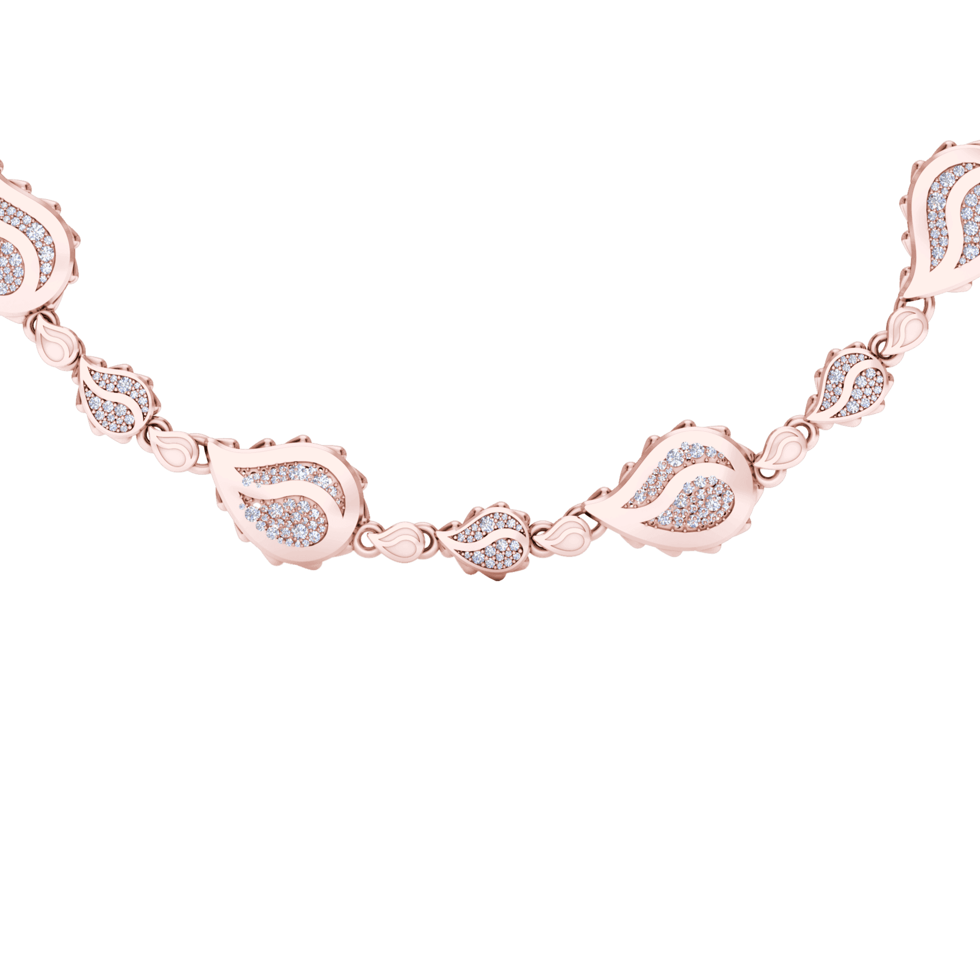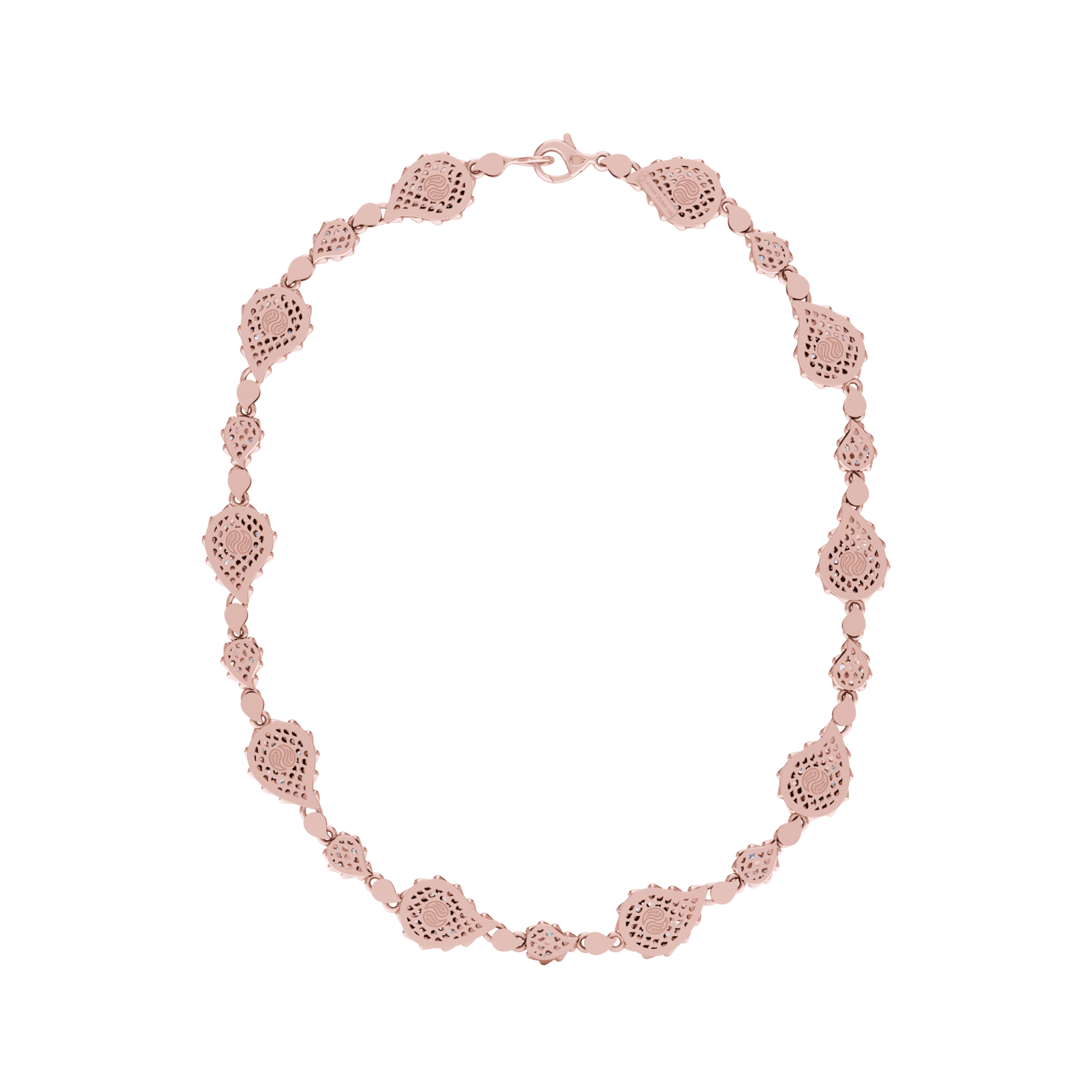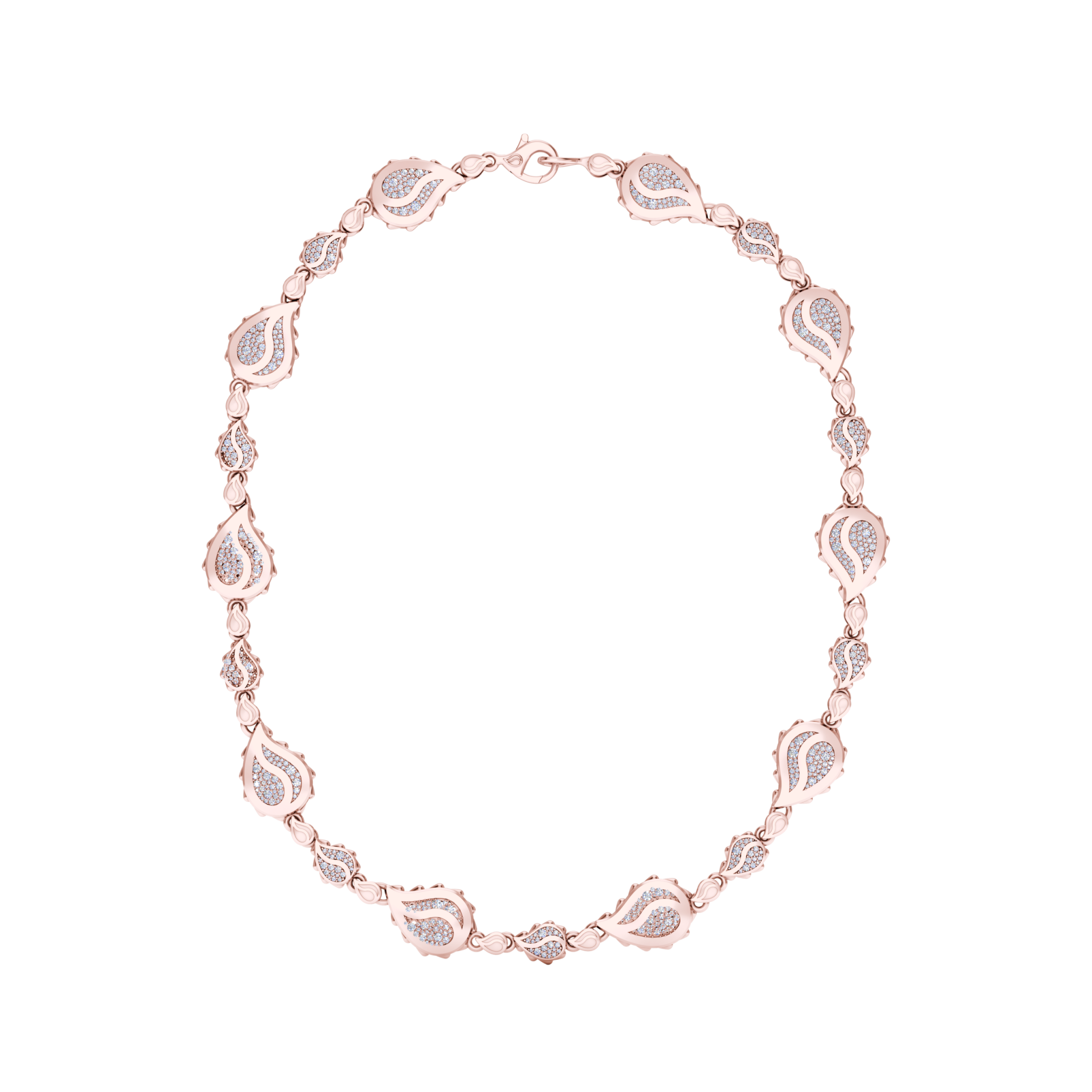 The Signature Grand Duo Necklace is available in 18K Rose ecological gold with Fairmined Certification and encrusted with diamonds of the finest DEF, VVS quality, responsibly mined and impeccably cut. This stunning creation is one-of-a-kind: individually cast, handset multi-sized diamonds, meticulously hand finished and polished to perfection.