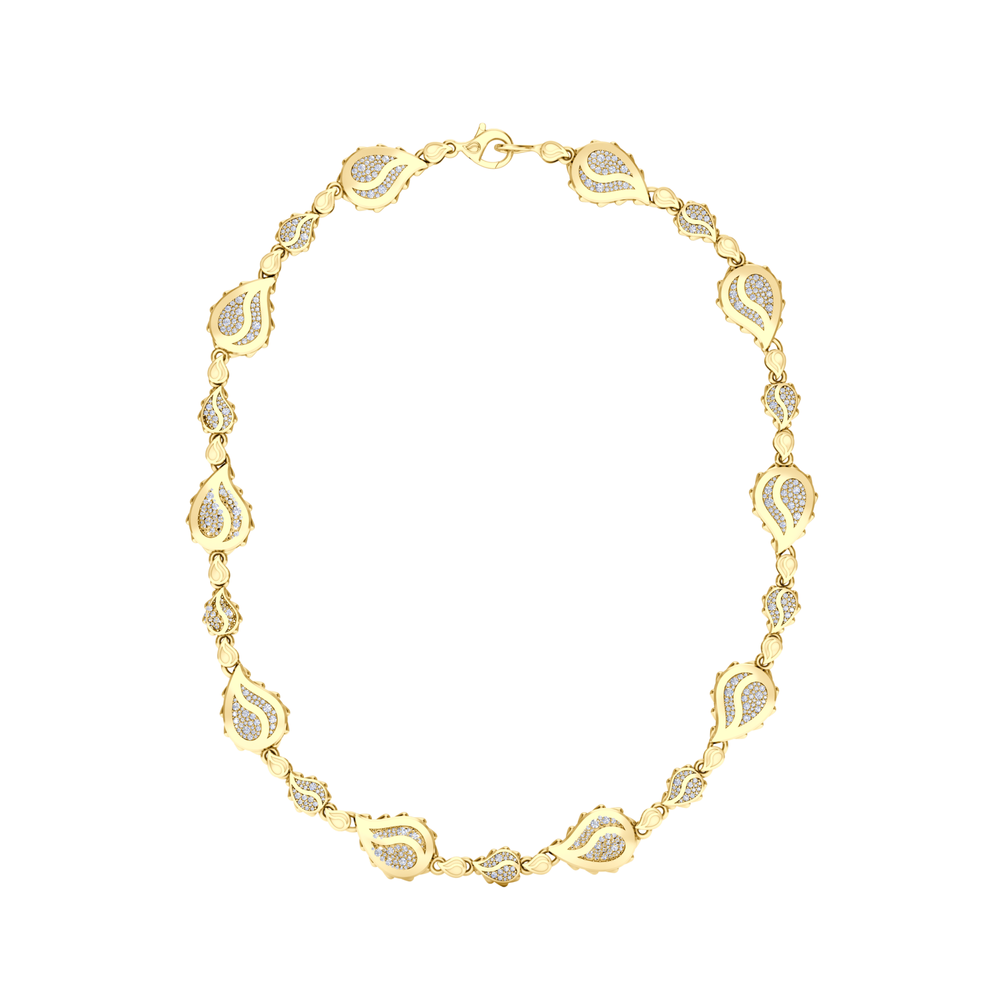 The Signature Grand Duo Necklace is available in 18K Yellow ecological gold with Fairmined Certification and encrusted with diamonds of the finest DEF, VVS quality, responsibly mined and impeccably cut. This stunning creation is one-of-a-kind: individually cast, handset multi-sized diamonds, meticulously hand finished and polished to perfection.