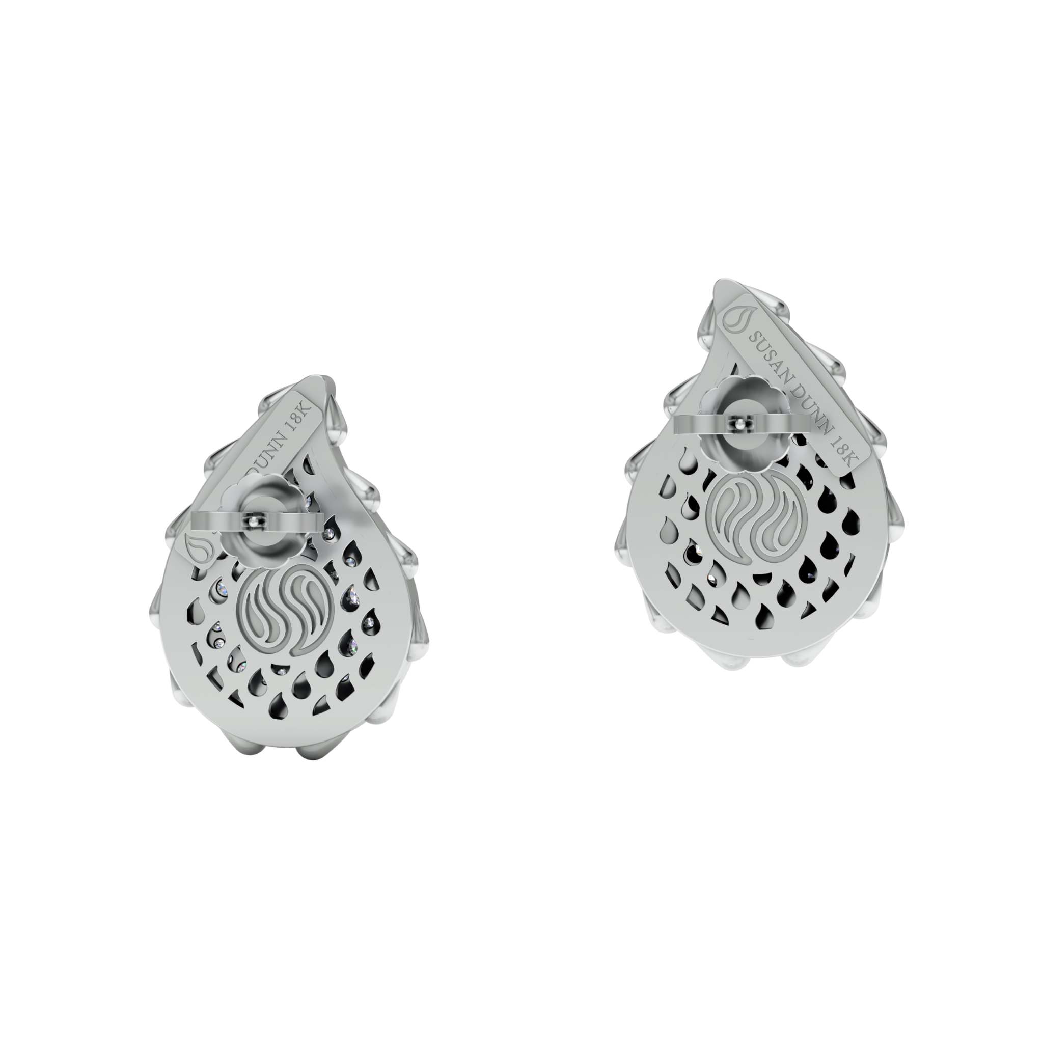 The Signature Grand Earrings are available in 18K White gold with Fairmined Certification and encrusted with diamonds of the finest DEF, VVS quality, responsibly mined and impeccably cut. This elegant pair is one-of-a-kind: individually cast, handset diamonds, meticulously hand finished and polished to perfection.